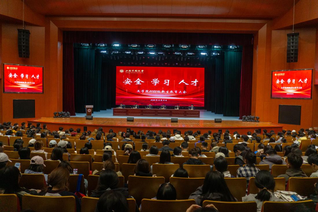 锚定新起点,蓄力向未来。为帮助2025级新生尽快适应大学生活,深入了解学院建设发展情况,树立安全意识,明确学习目标,夯实成长成才之基,10月10日,太阳集团tyc33455在本真楼演播厅举行“安全·学习·人才”为主题的2025级新生教育大会。学院领导、系主任、各办公室负责人、专兼职辅导员及全体2025级本科生和研究生参加大会。院长张忠堂主持大会。